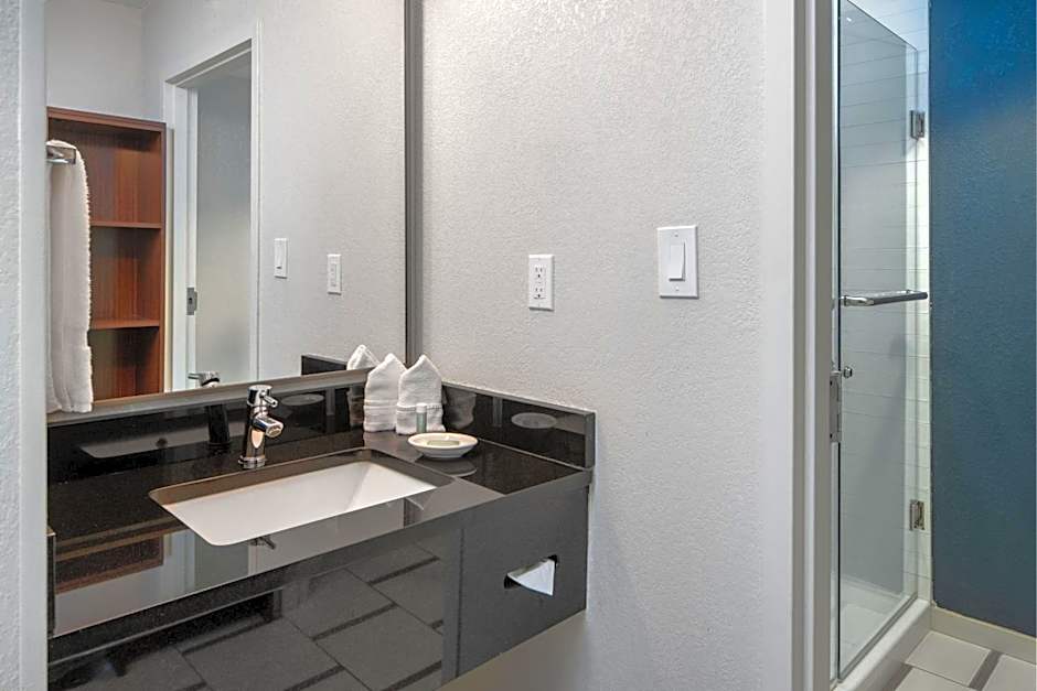 This ground level suite features air conditioning, a cable TV and a microwave.